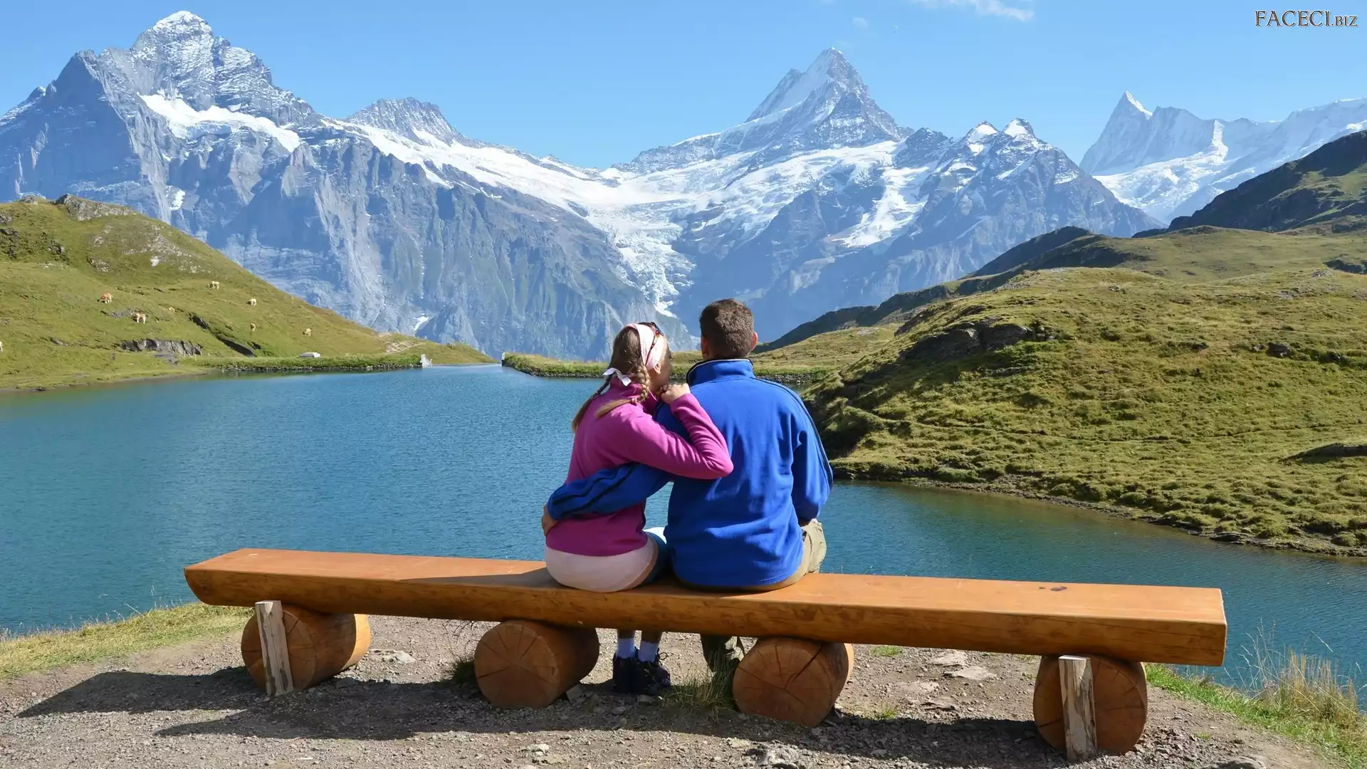 Góry, Para, Trawa, Ławka, Miłość, Jezioro - faceci.biz
